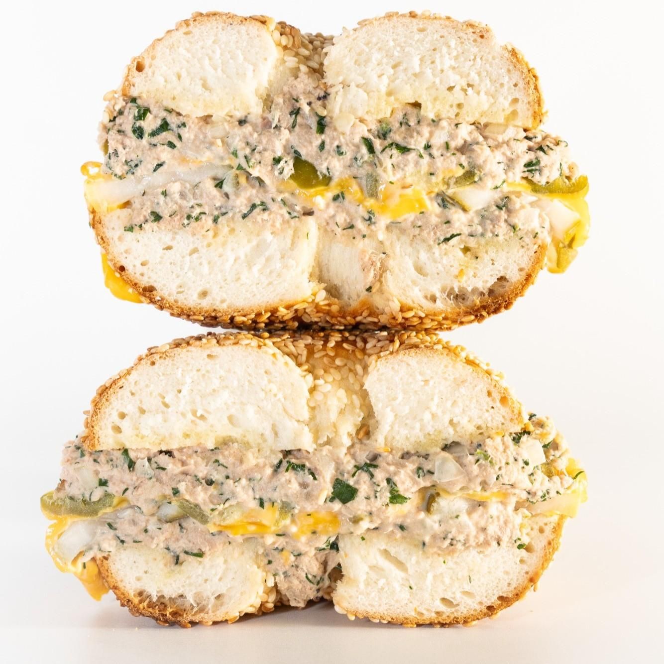 MILE END MONTHLY SPECIAL - TUNA MELT House tuna mix with dill, celery, white onion, pickles and jalapenos. Topped with cheese and grilled.